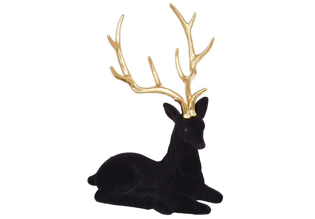 Декоративна флокова фігура Олень 21.5см, колір - чорний онікс із золотими рогами