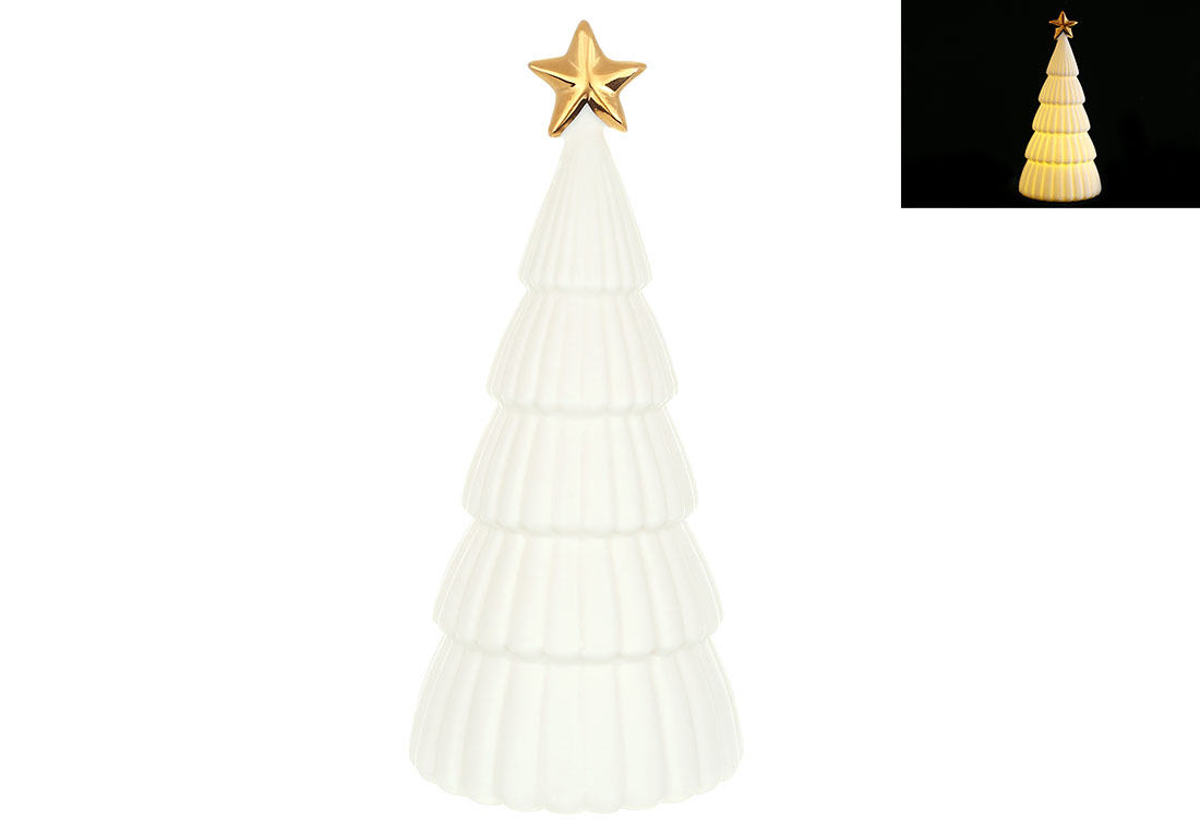 Декоративна керамічна Ялинка з LED підсвічуванням D9.5*21см, колір - білий матовий