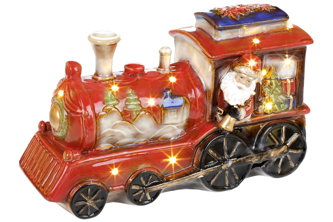 Декоративна керамічна фігура з LED підсвічуванням Паровоз із Сантою, 36см