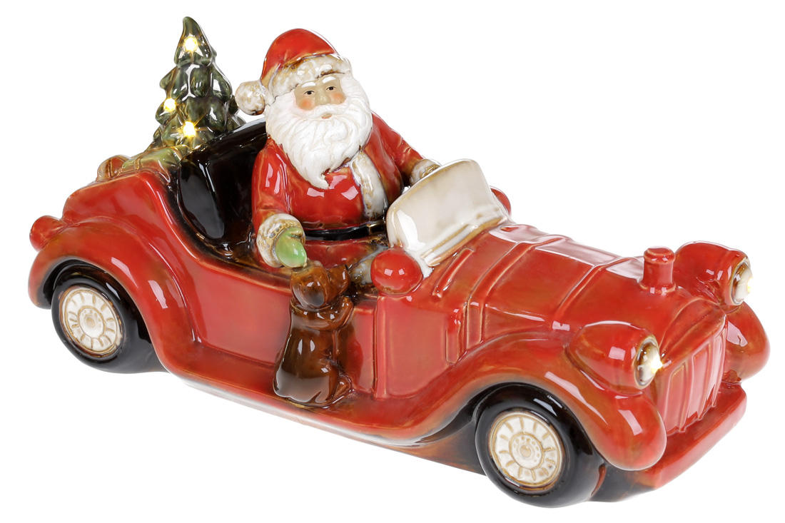 Декоративна керамічна фігура Санта на машині, з LED підсвічуванням, 36см