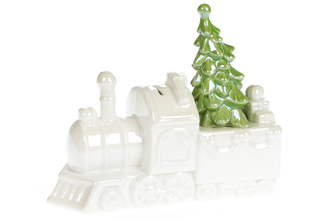 Декоративна керамічна статуетка-скарбничка Паровоз, 20см, колір - білий перламутр