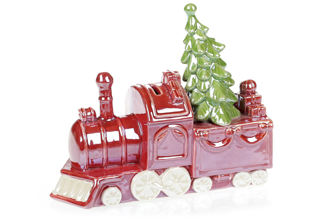 Декоративна керамічна статуетка-скарбничка Паровоз, 20см, колір - червоний перламутр