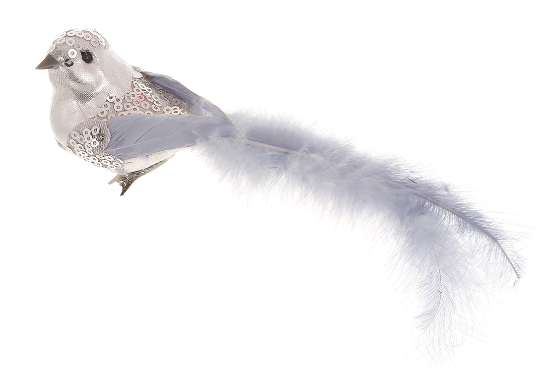 Декоративна Колібрі на кліпсі 16см, колір - шампань із блакитним