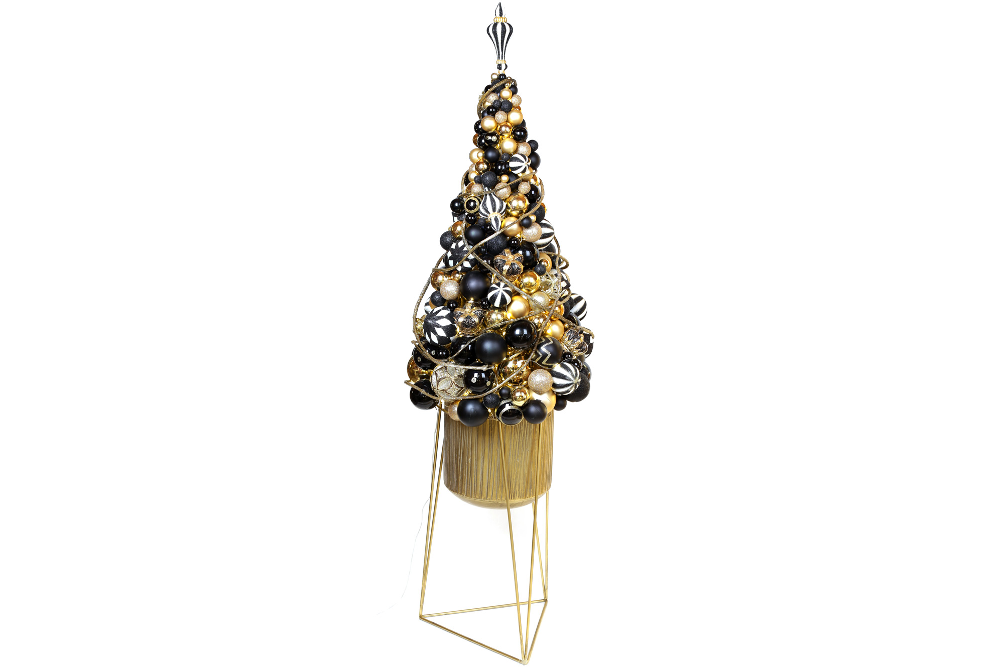 Декоративна композиція 123см зі скляних та пластикових куль із LED гірляндою в металевому кашпо