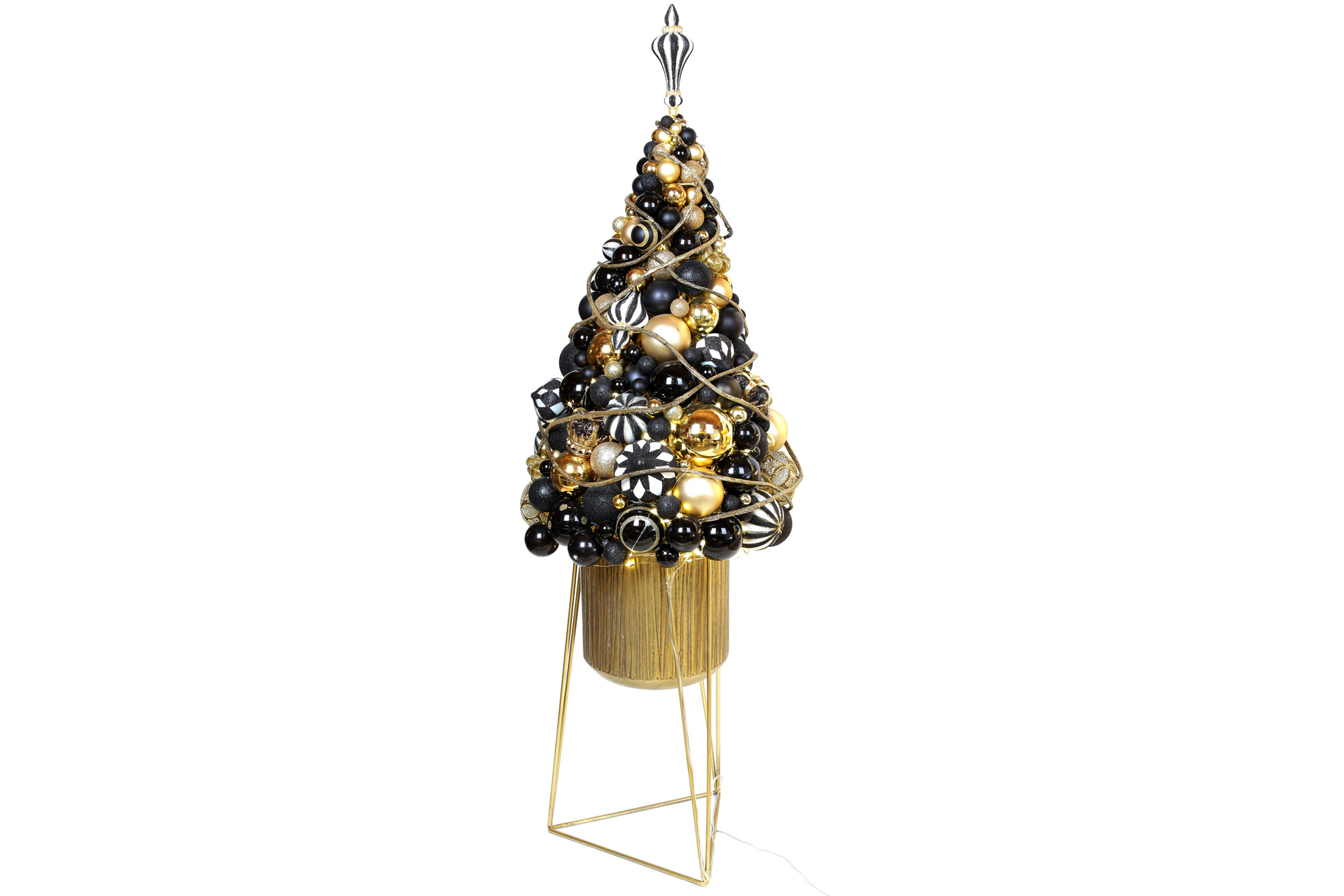 Декоративна композиція 98см зі скляних та пластикових куль із LED гірляндою в металевому кашпо