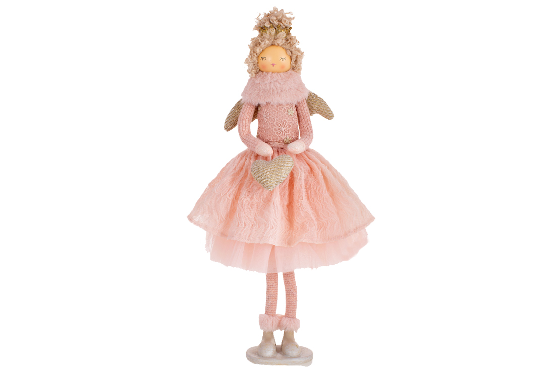 Декоративна лялька Ангел із серцем, 50см, колір - рожевий персик