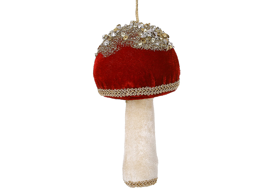 Декоративна м'яка підвіска Гриб з декором з паєток, 13*17см, колір - червоний