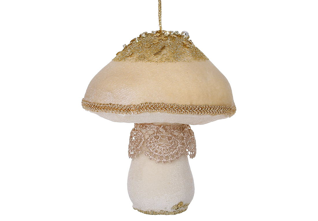 Декоративна м'яка підвіска Гриб з декором з паєток, 13*9.5см, колір - персиковий