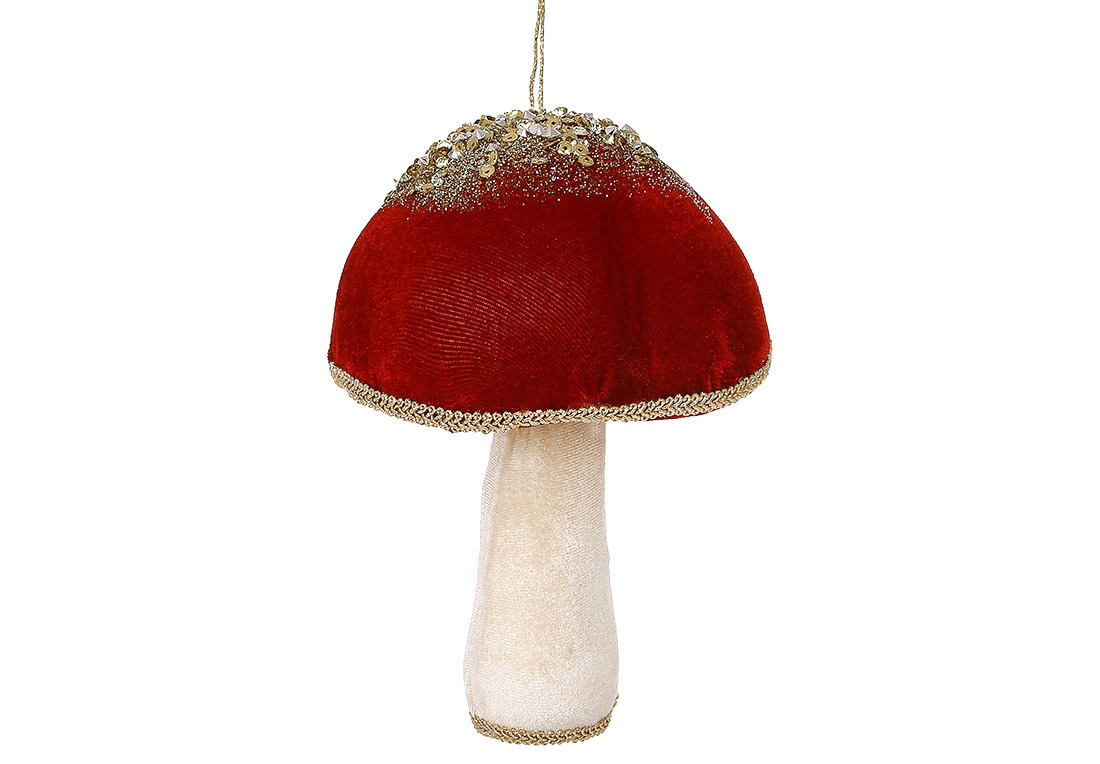 Декоративна м'яка підвіска Гриб з декором з паєток, 17*12см, колір - червоний