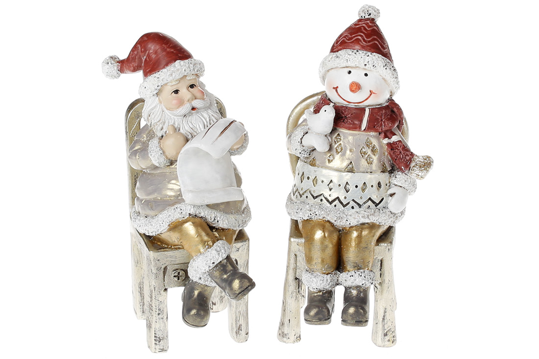 Декоративна новорічна фігурка, 16,5см, 2 дизайни - Санта та Сніговик на стільці