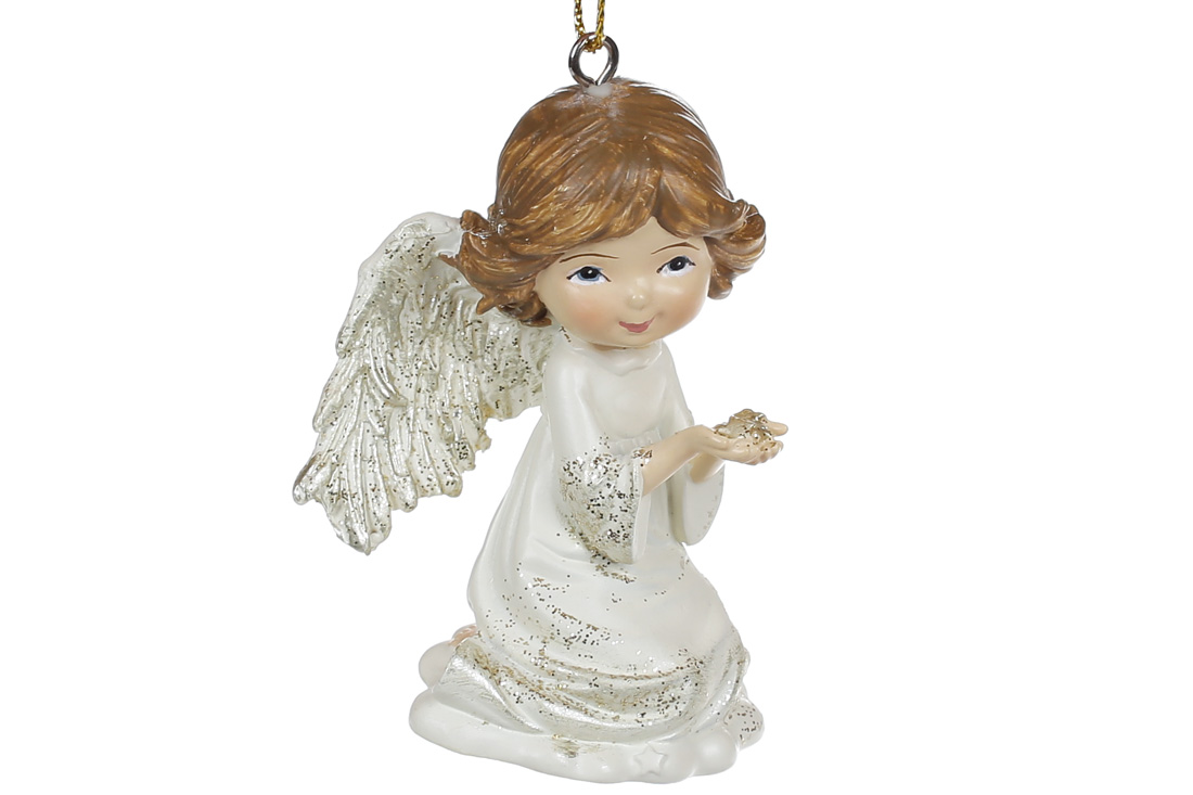 Декоративна підвіска Янгол, 6.5см, колір - білий із шампанню.