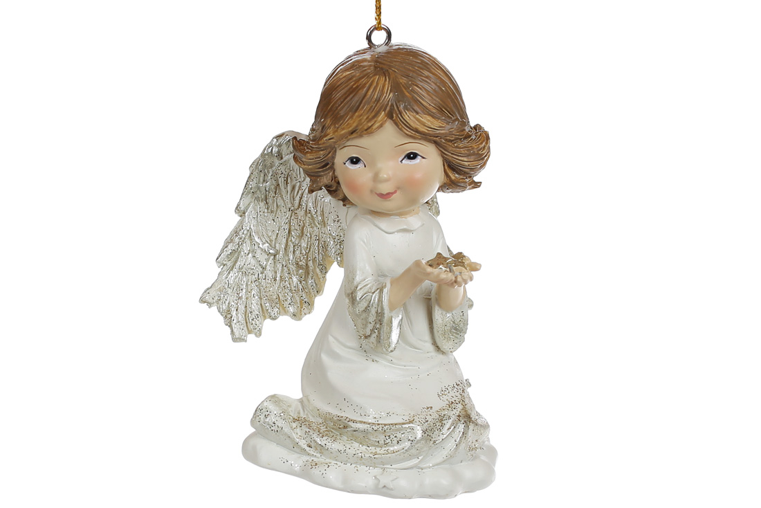 Декоративна підвіска Янгол, 9см, колір - білий із шампанню