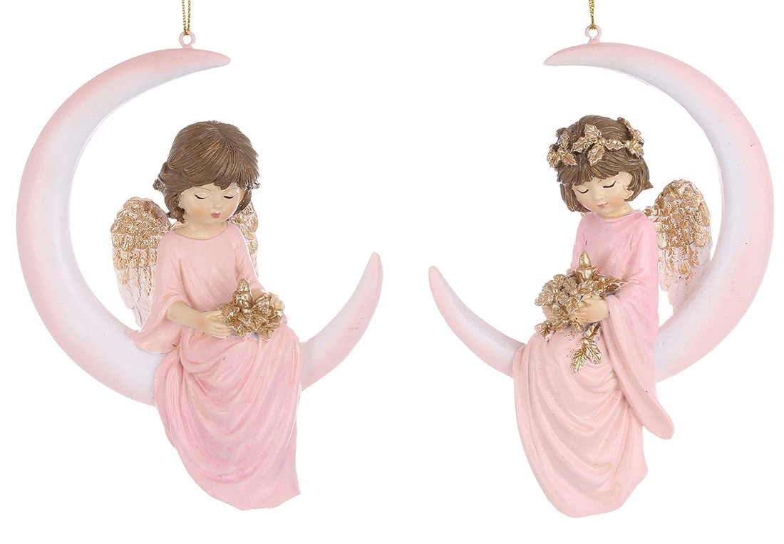 Декоративна підвіска Ангел на місяці, 10.5*5*14.5см, 2 дизайни, колір - рожевий з шампанню