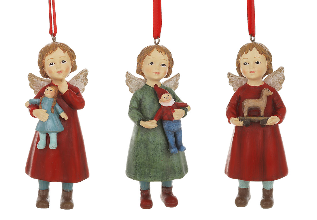 Декоративна підвіска Янголятко - дівчинка 4*4.5*11см, 3 дизайни, колір - бордовий і зелений
