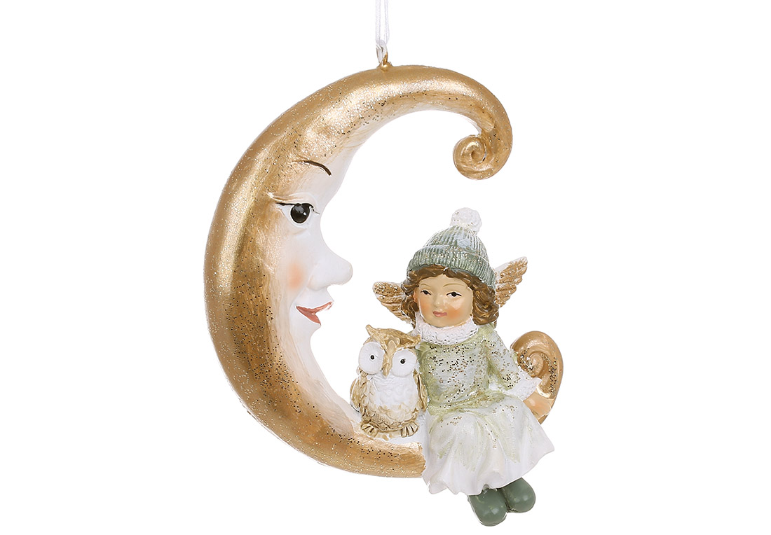Декоративна підвіска Янголятко з совою на місяці 7.5*3*10см