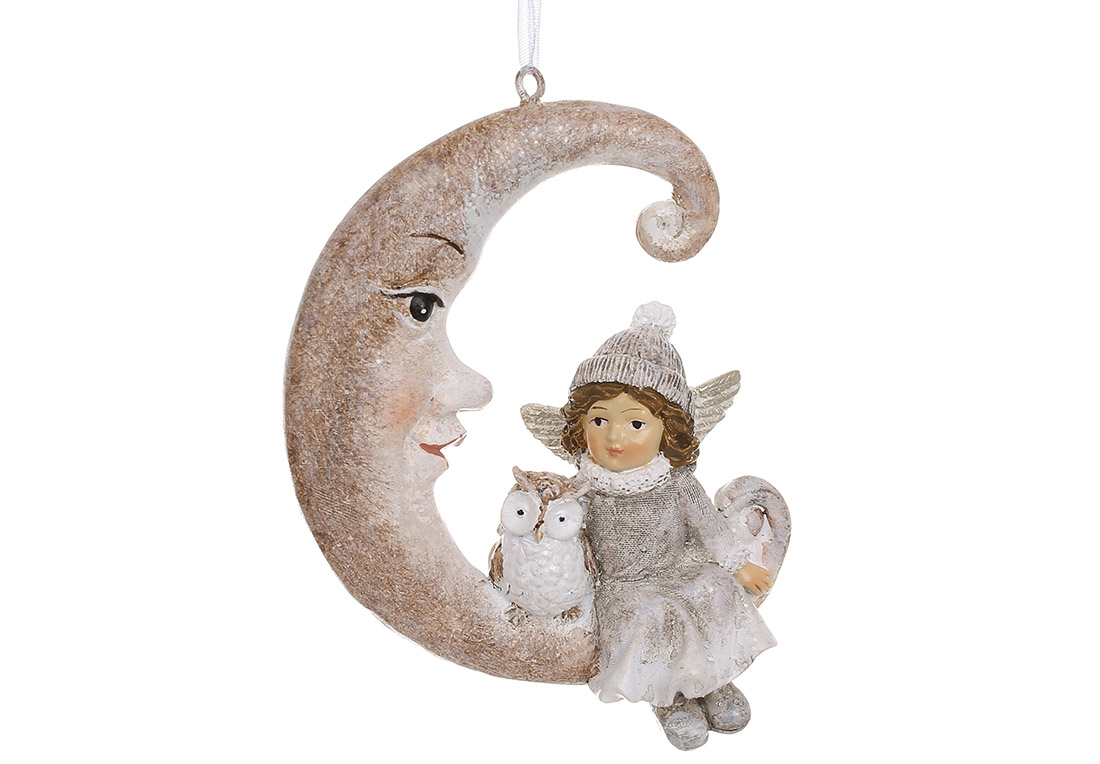 Декоративна підвіска Янголятко з совою на місяці 7.5*3*10см