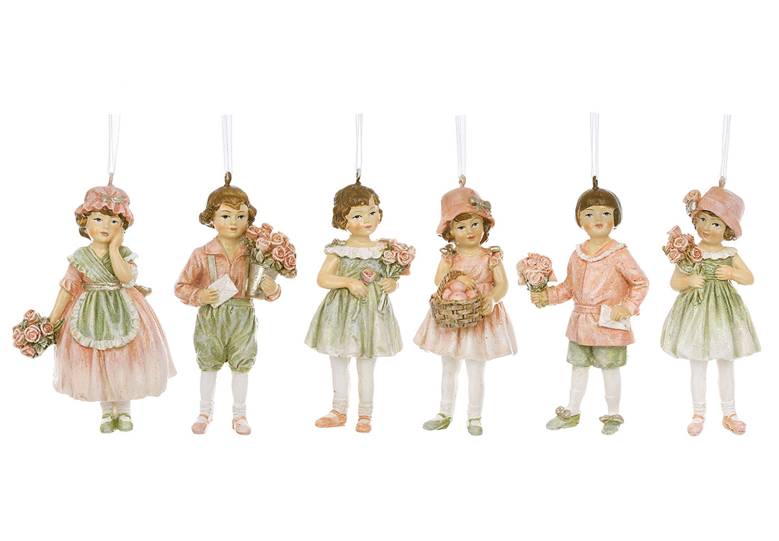 Декоративна підвіска Дітки 11см, 6 дизайнів, колір - персиковий із зеленим