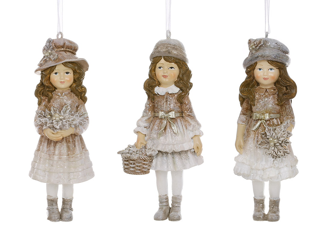 Декоративна підвіска Дівчинка з різдвяником 11см, 3 дизайни, колір - коричневий із сірим