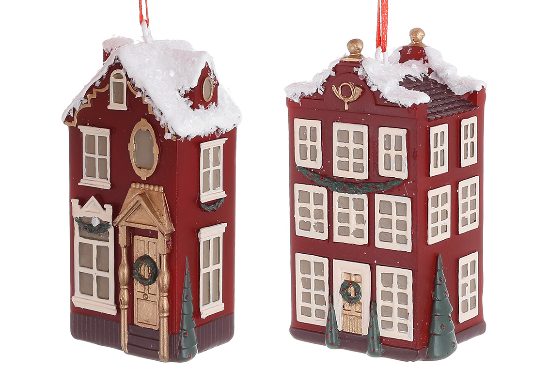 Декоративна підвіска Будиночок, 2 дизайни, 8.4см, колір - бордовий