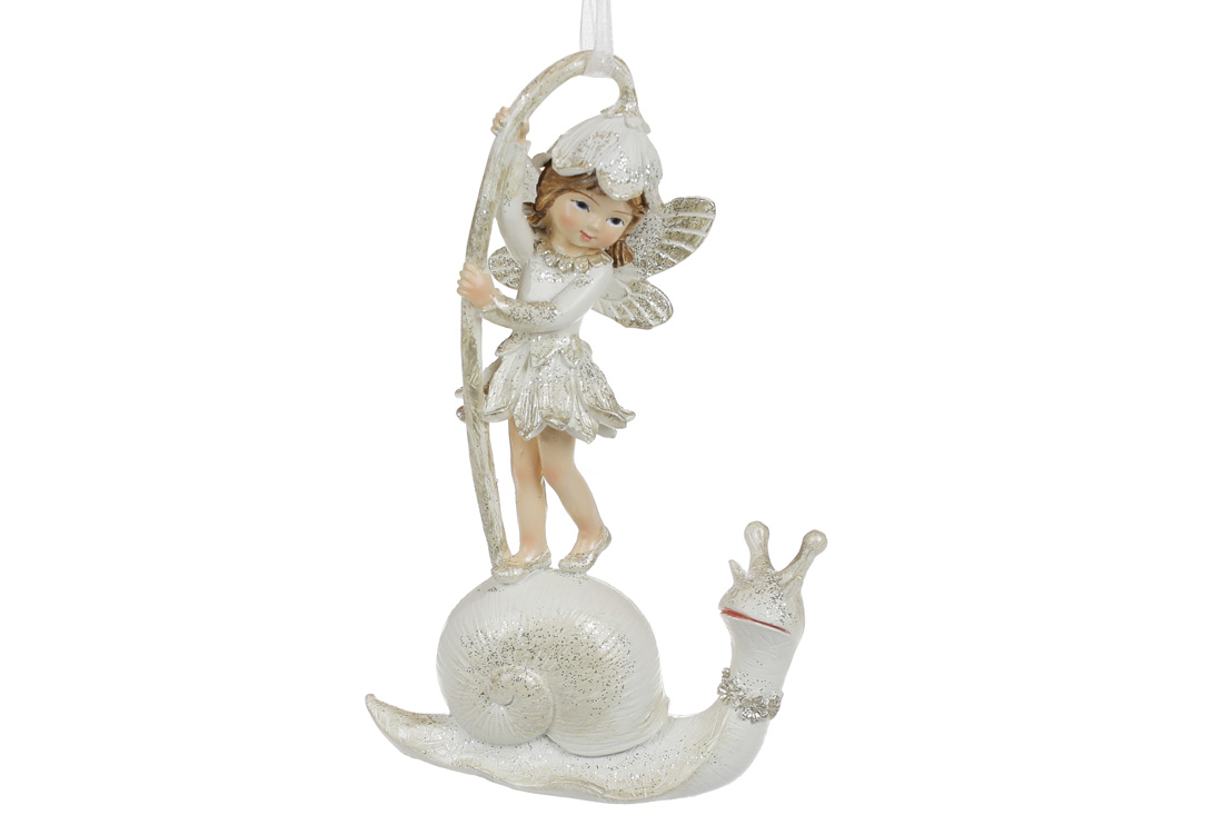 Декоративна підвіска Ельф та Равлик, 13.5см, колір - білий з шампанню