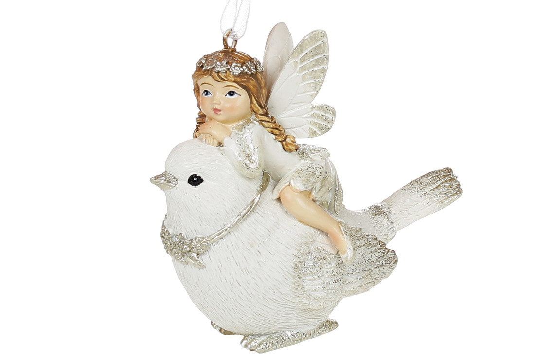 Декоративна підвіска Ельф на Пташці, 9см, колір - білий з шампанню