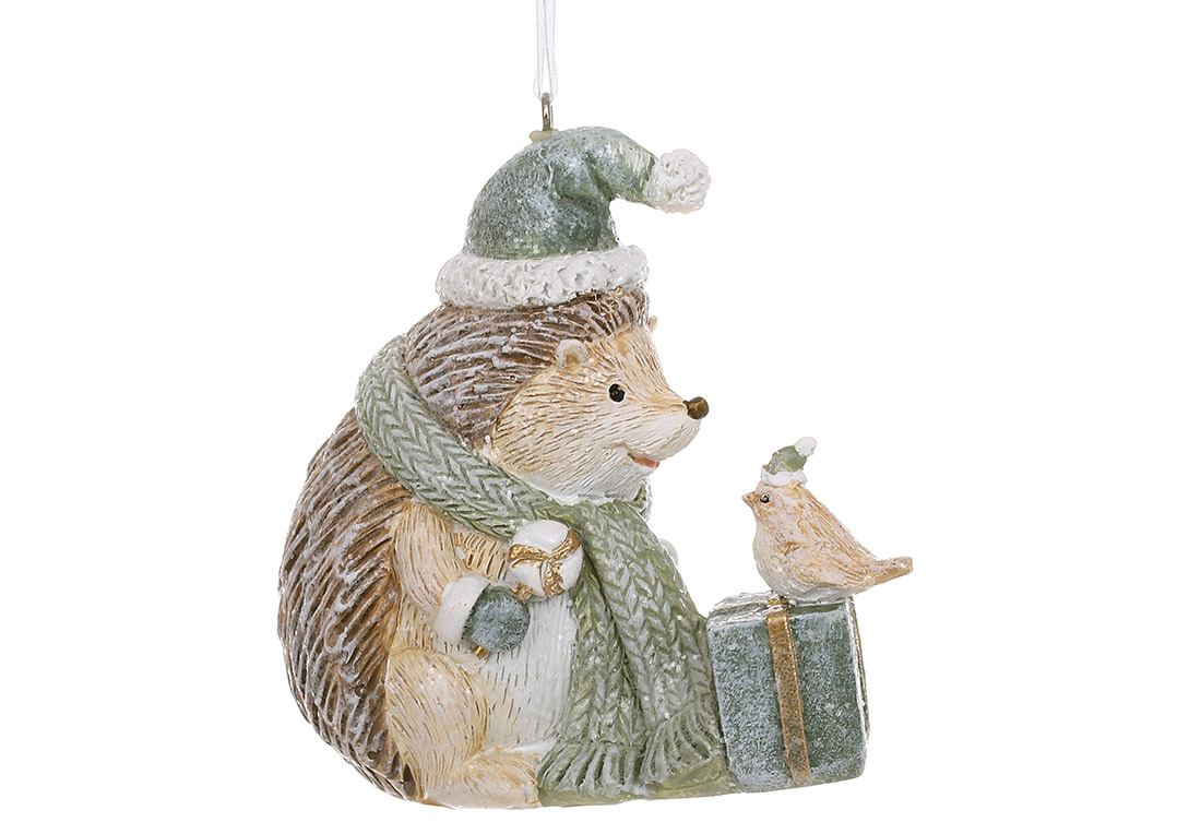 Декоративна підвіска Їжачок з пташкою 9.5*5*8.5см, колір - коричневий з тіффані