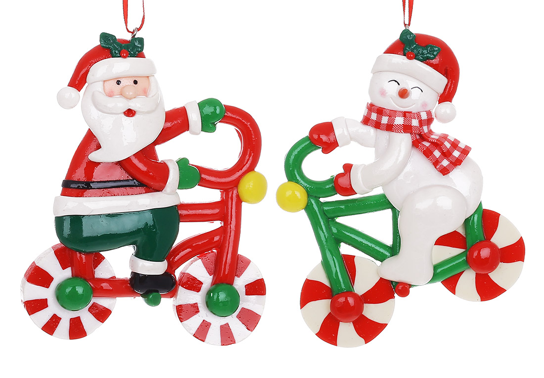 Декоративна підвіска Карамельний санта і сніговик на велосипеді, 9.5*2*12см, 2 дизайни