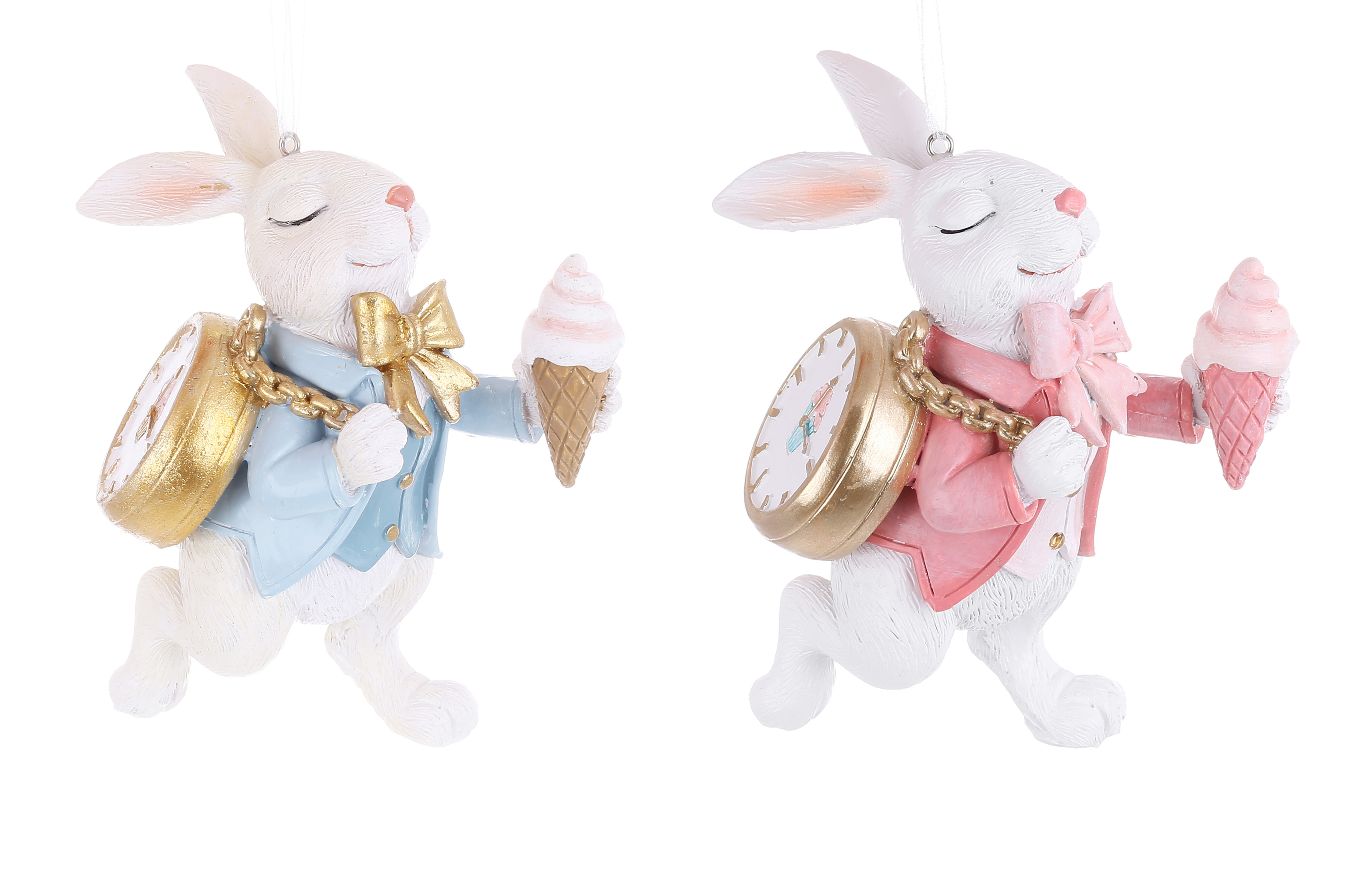 Декоративна підвіска Кролик з годинником 10*6*12см, 2 дизайни, колір - рожевий та блакитний