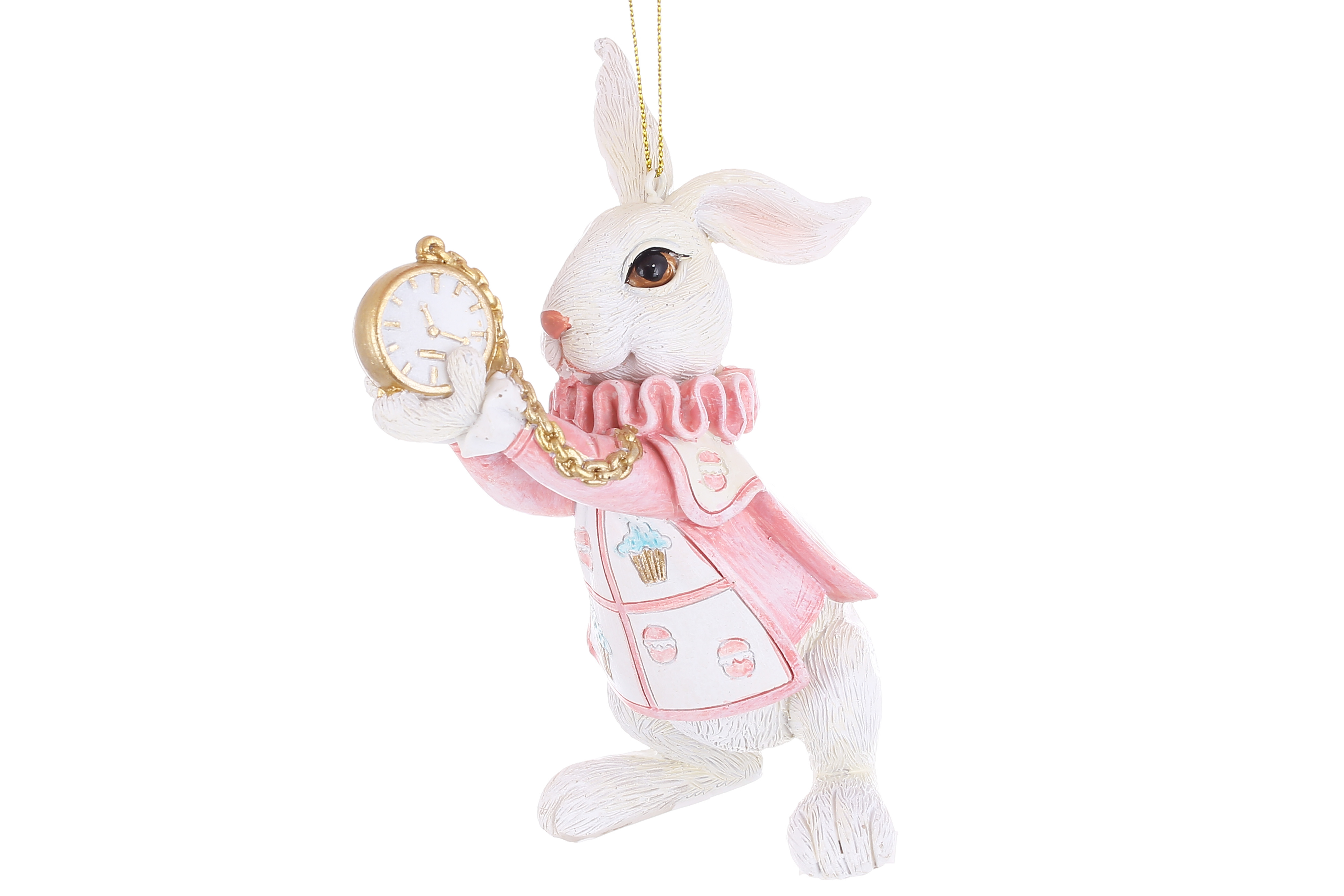 Декоративна підвіска Кролик з годинником 9.5*7.5*13см, колір - білий з рожевим