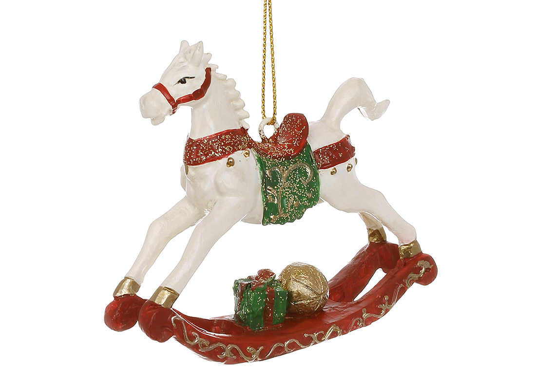 Декоративна підвіска Конячка - гойдалка 8*2*7.5см, колір - білий з червоним