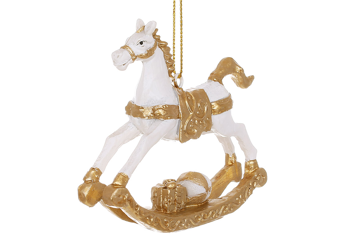 Декоративна підвіска Конячка - гойдалка 8*2*7.5см, колір - білий із золотом