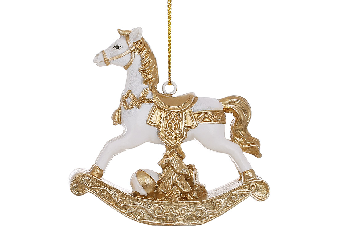 Декоративна підвіска Конячка - гойдалка 8*2*8см колір - білий із золотом