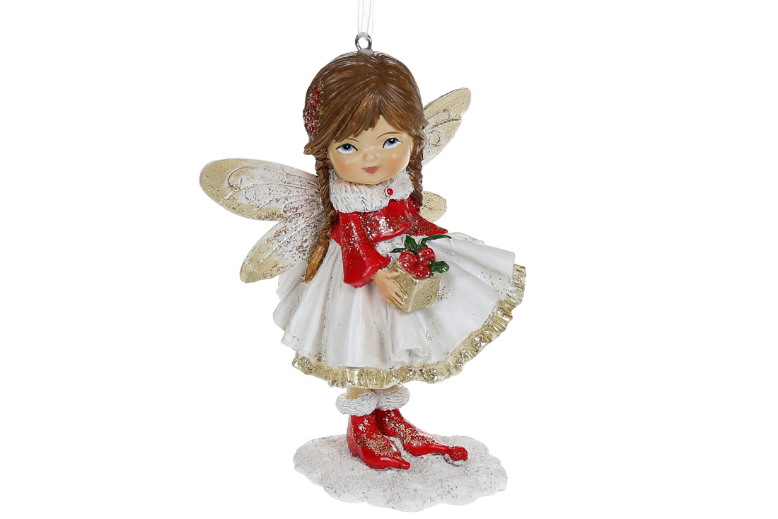 Декоративна підвіска Малятко Фея з подарунком, 11.5см, колір - червоний з білим