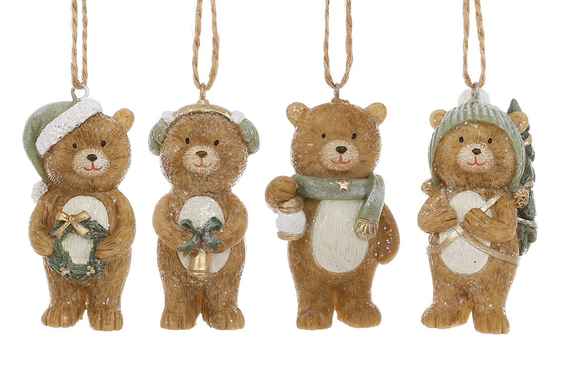 Декоративна підвіска Ведмедик Тедді 4*3*7см, 4 дизайни, колір - світло коричневий із зеленим