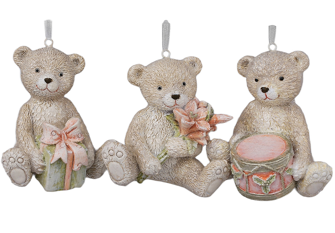 Декоративна підвіска Ведмедик Тедді 7.5*8см, колір - персиково-рожевий