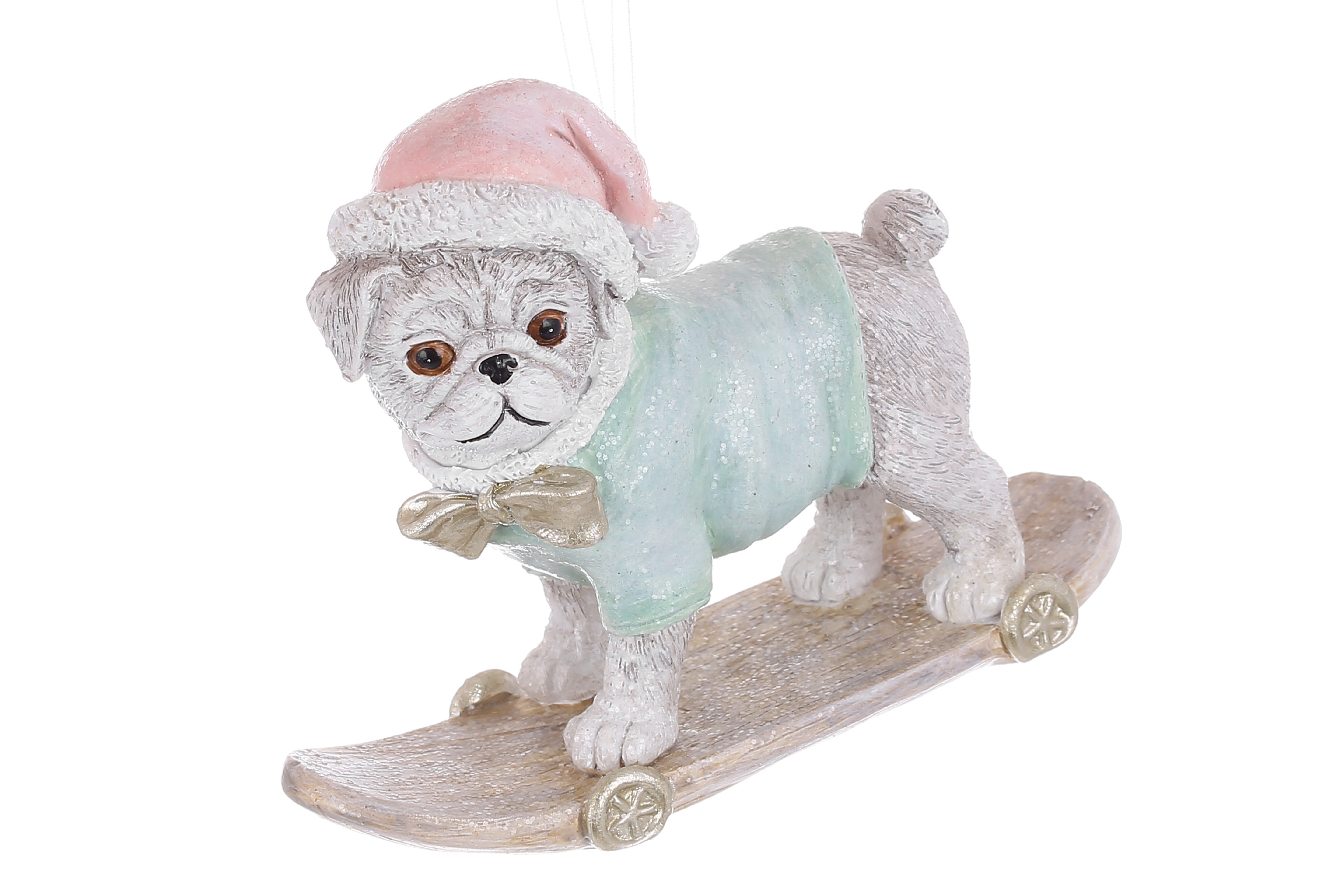 Декоративна підвіска Мопс на скейті 12*4.5*9.5см, колір - сірий з м'ятним