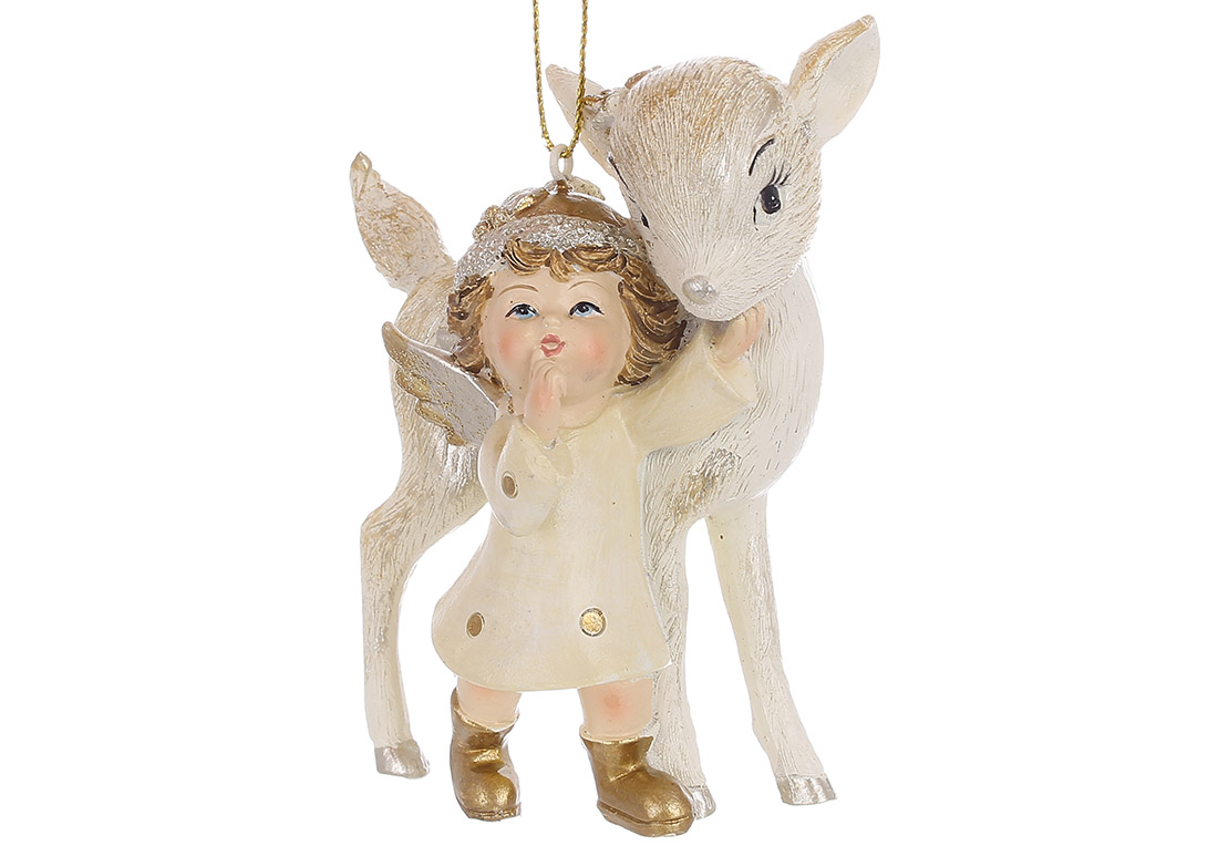 Декоративна підвіска Оленя з янголятком 8.5*4.5*10.5см, колір - кремовий із золотом