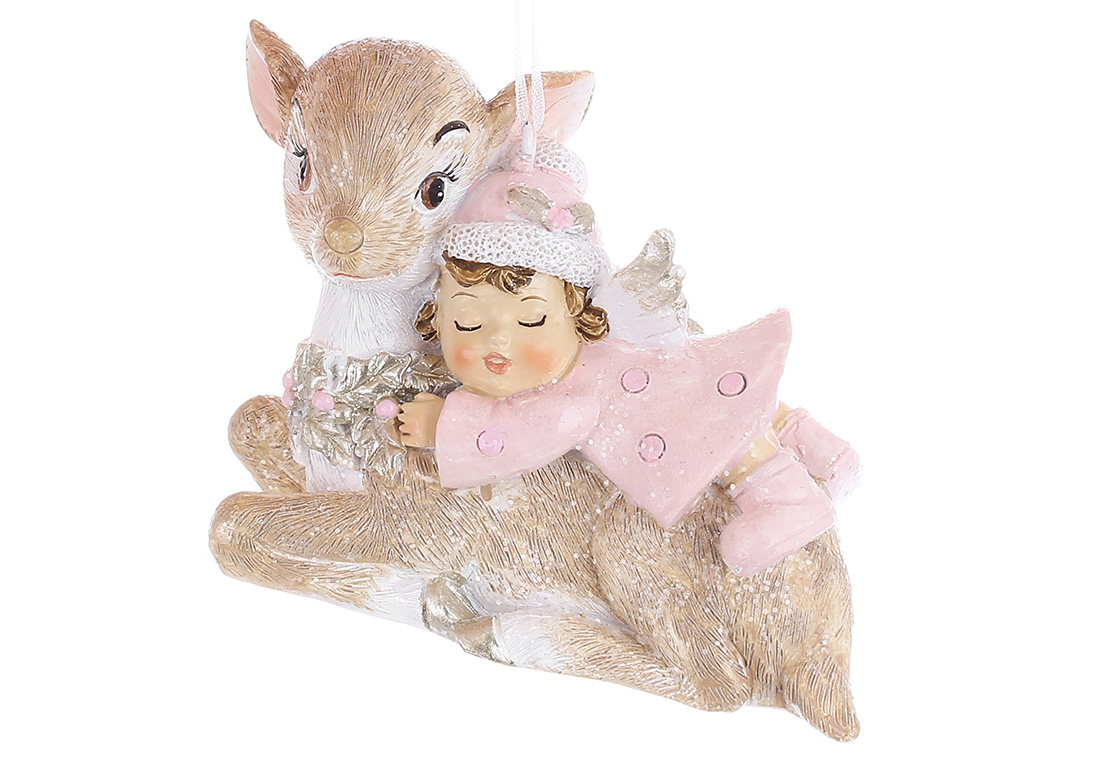Декоративна підвіска Оленя з янголятком 9.5*4*7см, колір - бежевий з рожевим