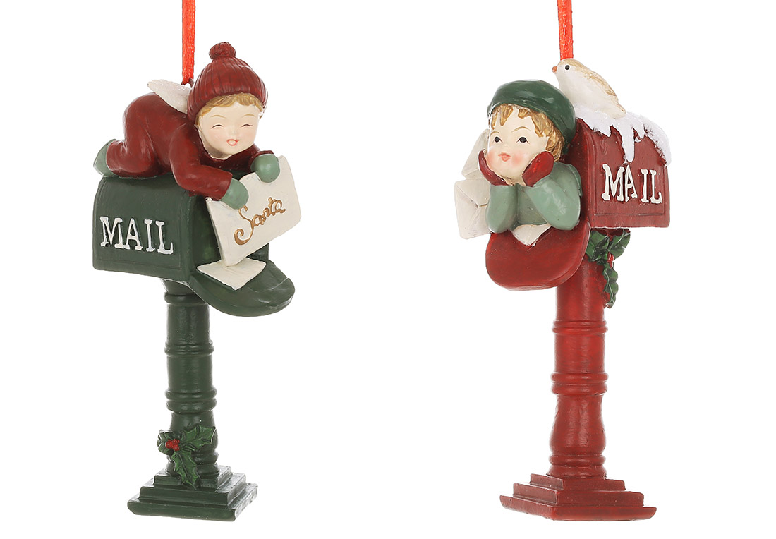 Декоративна підвіска Поштова скринька з янголятком 12.5см і 13.5см, 2 дизайни, колір - зелений і бордовий