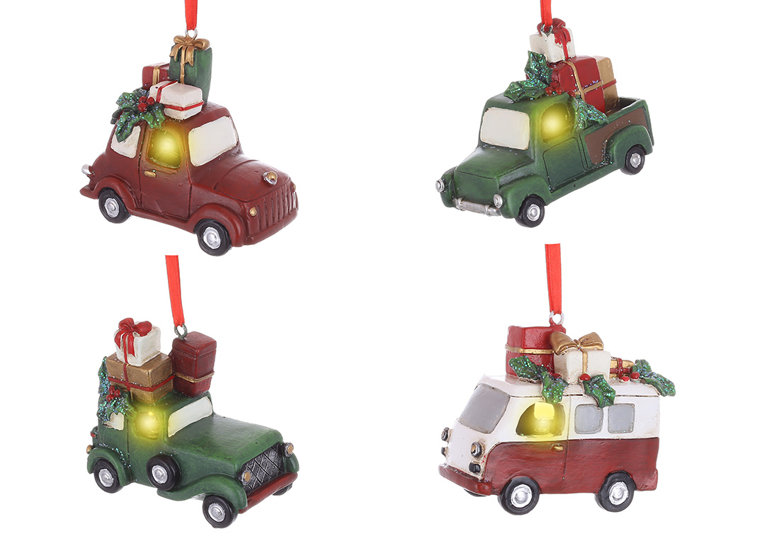 Декоративна підвіска з LED Машинка з подарунками, 7.5см, 4 дизайни