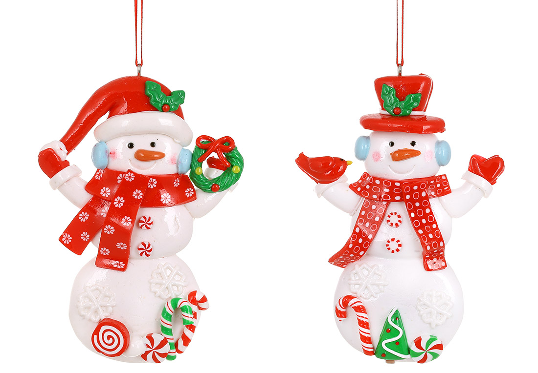 Декоративна підвіска Сніговик - карамелька 12*9*1.5 см, 2 дизайни, колір - білий з червоним