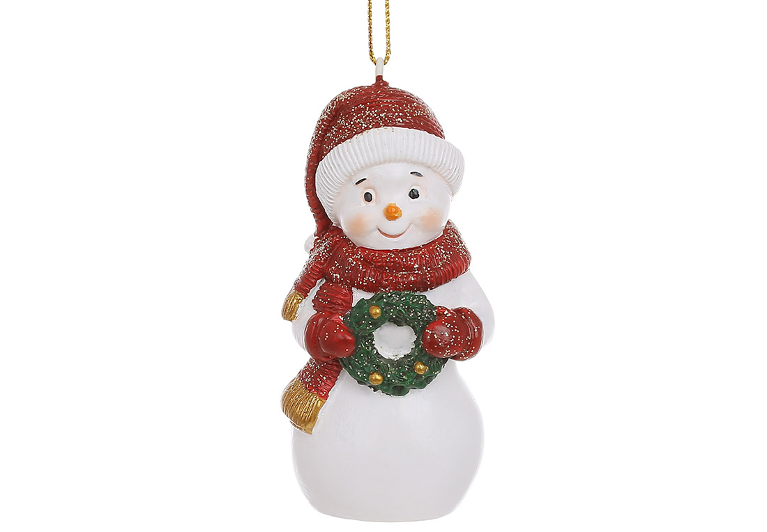 Декоративна підвіска Сніговик з вінком 4*3*8см