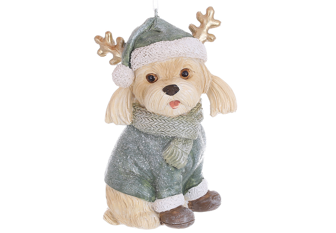 Декоративна підвіска Собака у светрі та шапці 8*5*10.5см, колір - світло-коричневий з м'ятним