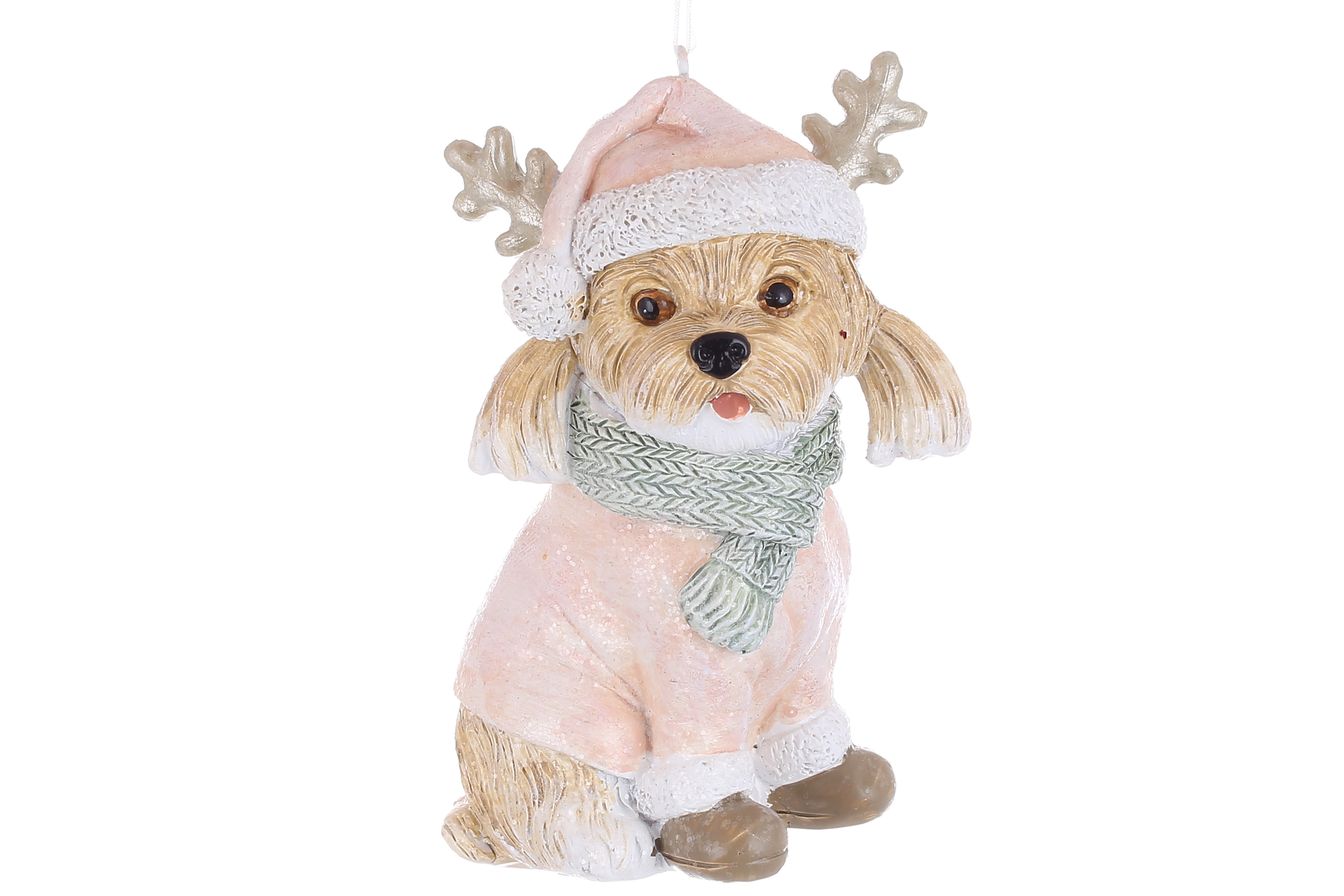 Декоративна підвіска Собака у светрі та шапці 8*5*10.5см, колір - світло-коричневий з рожевим