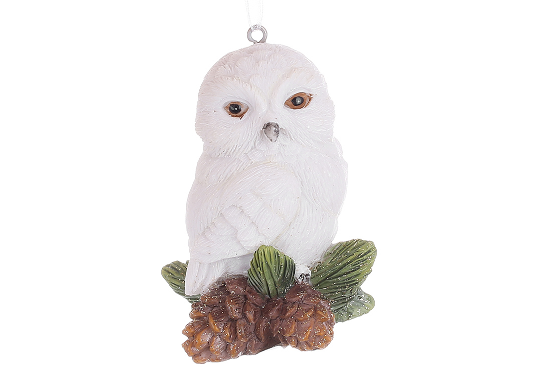 Декоративна підвіска Сова з шишками 5.5*4*7.5см, колір - білий