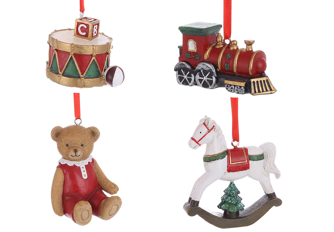 Декоративна підвіска в стилі Ретро, 4 види в асс: ведмедик, конячка, паровозик, барабан, 8.5см
