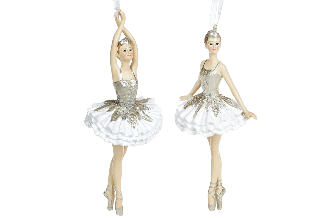 Декоративна підвісна фігурка Балерина, 14.5см, 2 дизайни, колір - шампань з білим