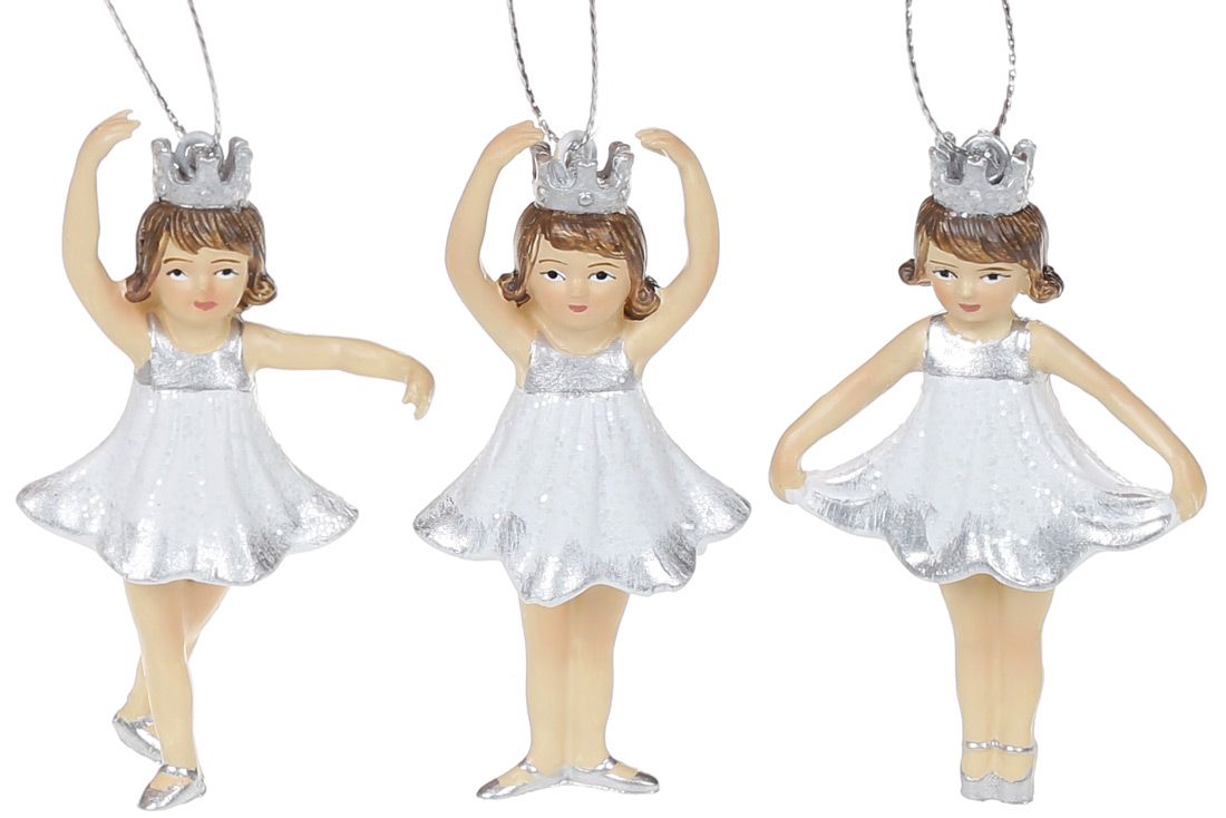 Декоративна підвісна фігурка Балерина-малятко 8.5см, 3 дизайни, колір - білий зі сріблом