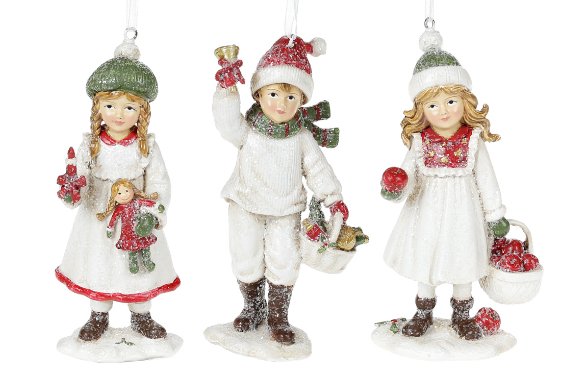 Декоративна підвісна фігурка Дітки, 13см, 3 дизайни, колір - білий з червоним