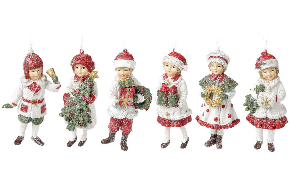 Декоративна підвісна фігурка Дітки, 6 дизайнів, 12см, колір - білий з червоним